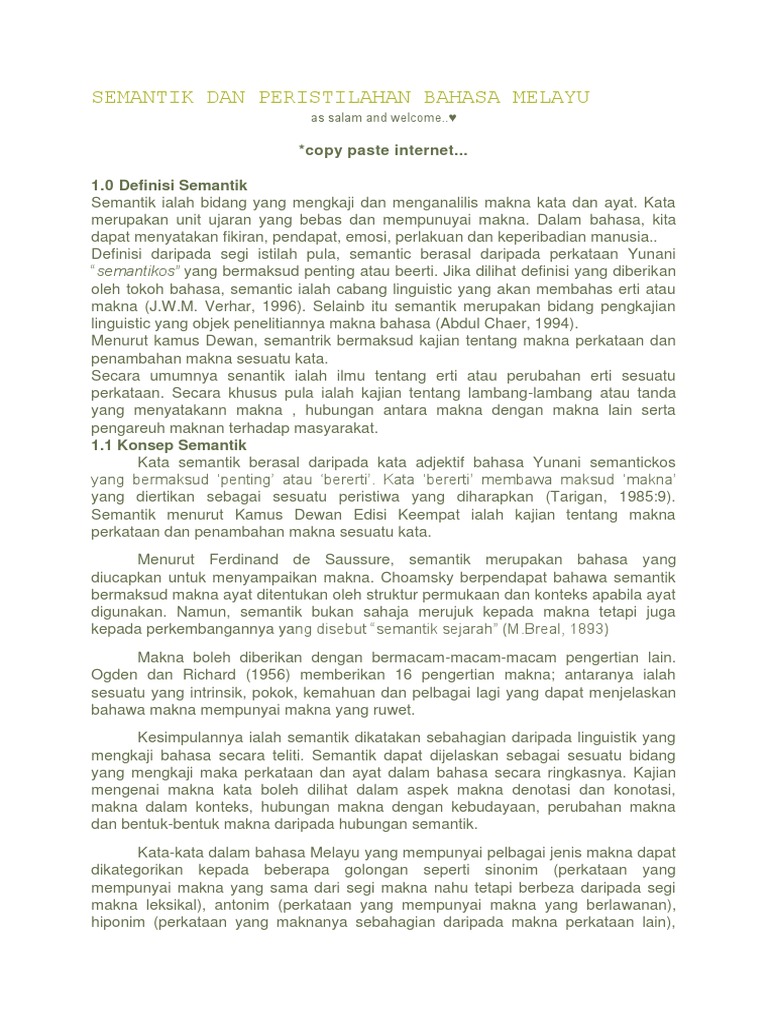 Semantik Dan Peristilahan Bahasa Melayu
