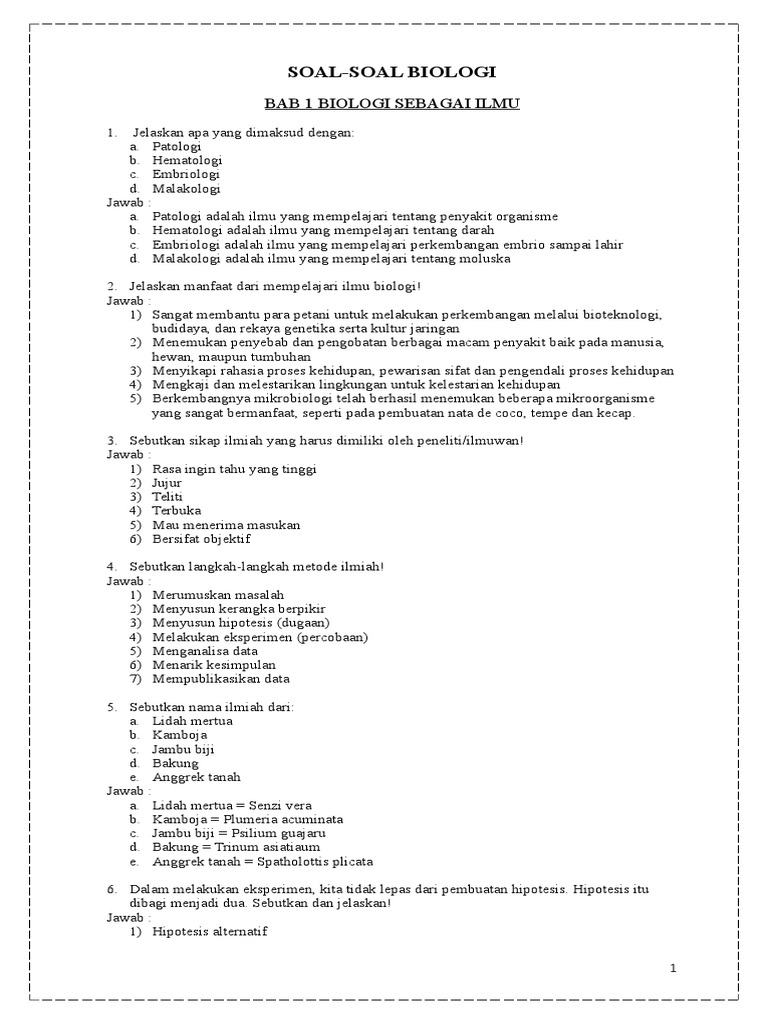 Soal Latihan Bab 1 Ruang Lingkup Biologi Beserta Jawabannya Bank Soal Biologi