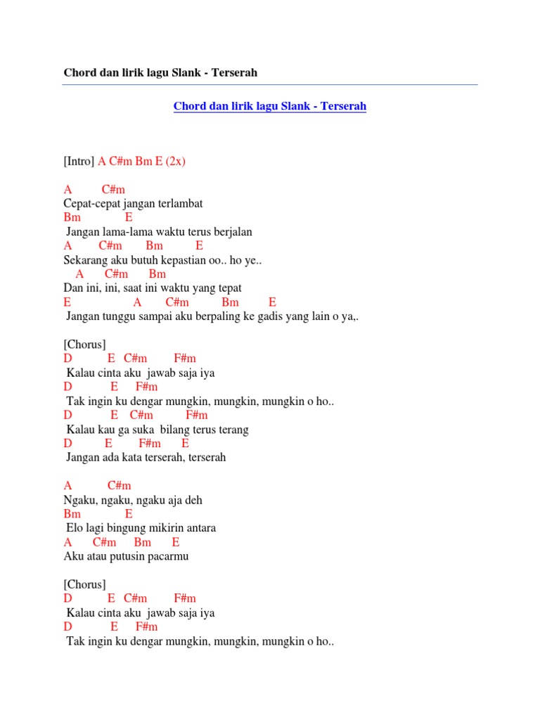 Chord Dan Lirik Lagu Slank Terserah By Chord Zila Issuu