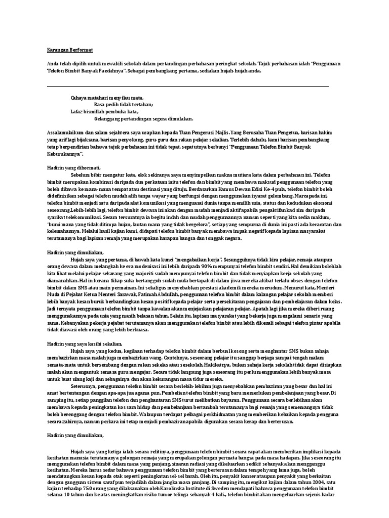 Karangan Kebaikan Dan Keburukan Telefon Docsity
