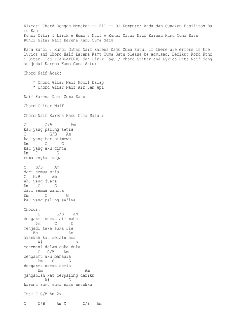 Lirik Dan Chord Lagu Karena Kamu Cuma Satu Dari Naif