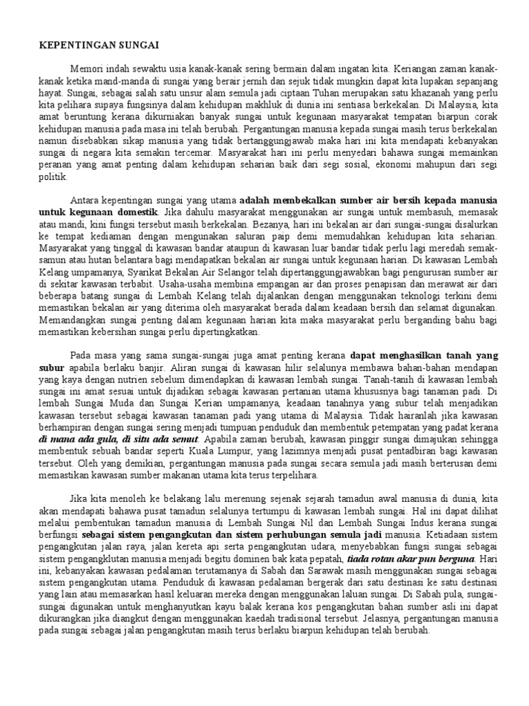 Kepentingan Sungai Docx Kepentingan Sungai Sungai Merupakan Anugerah Tuhan Kepada Manusia Sungai Sememangnya Amat Penting Dalam Kehidupan Kita Sejak Course Hero