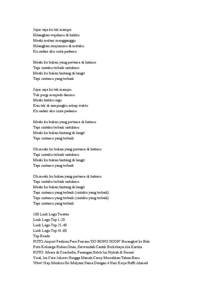 Lirik Lagu Cinta Terbaik Jujur Saja Ku Tak Mampu
