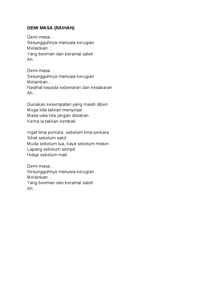 Lirik Lagu Demi Masa