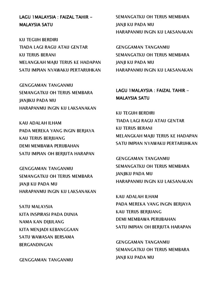 Malaysia Song Lyrics Faizal Tahir