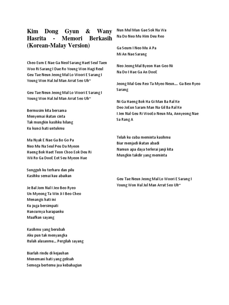 Lirik Lagu Memori Berkasih Achik Spin Ari Gunawan Academia Edu