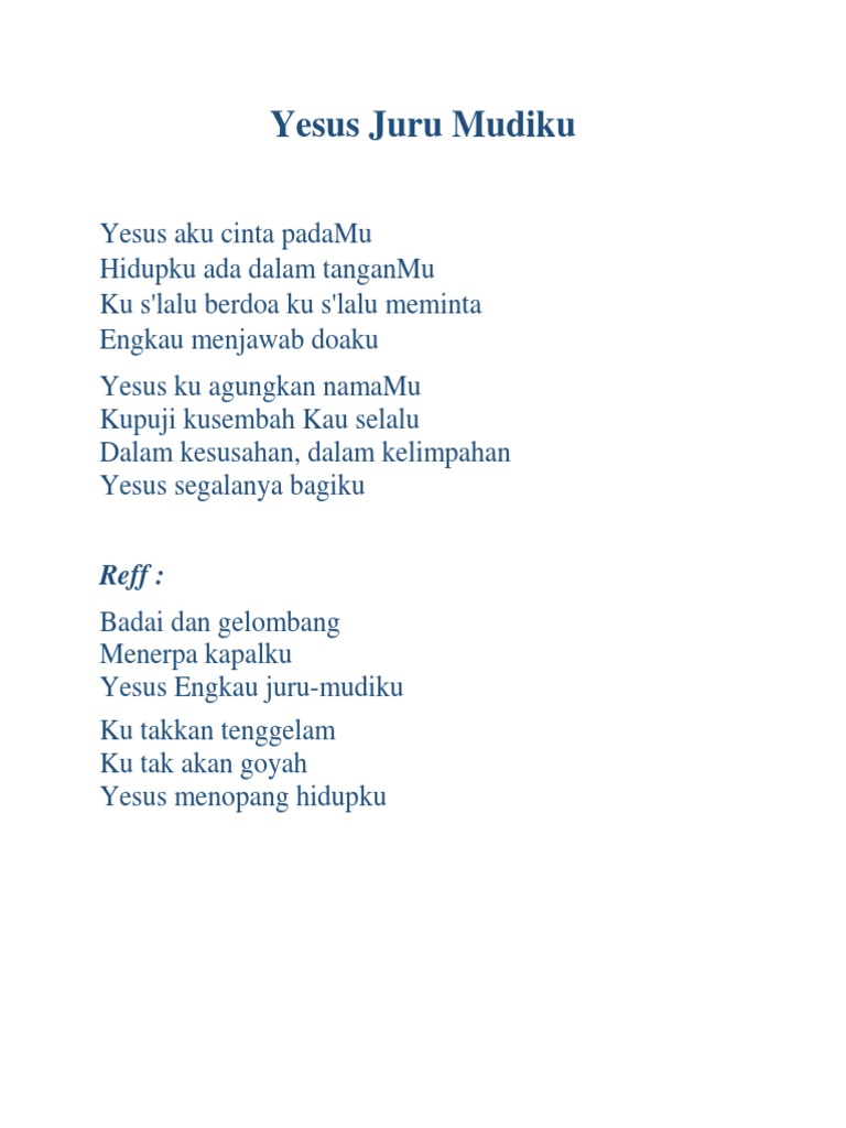 Lirik Lagu Pujian Rohani Kristen Sekolah Minggu Gereja Tuhan Yesus Yesus Aku Cinta Padamu