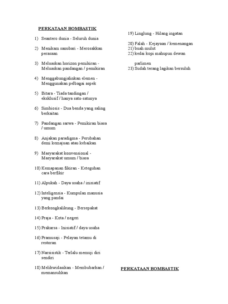 Peribahasa melayu ayat perkataan bombastik di dalam karangan kata hubung tip info bahasa malaysia pmr 2009 9. Panduan nota latihan bahasa melayu bagi pelajar spm pt3. Istilah bombastik maksud contoh. Ayat perkataan bombastik di dalam karangan.