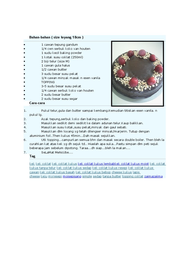 Kek Coklat Leleh Tanpa Telor Memang 1001 Aneka Resepi Kek Facebook