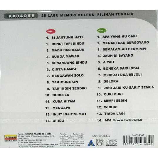 Karaoke Koleksi Pilihan Terbaik 28 Lagu Memori 2vcd Shopee Malaysia