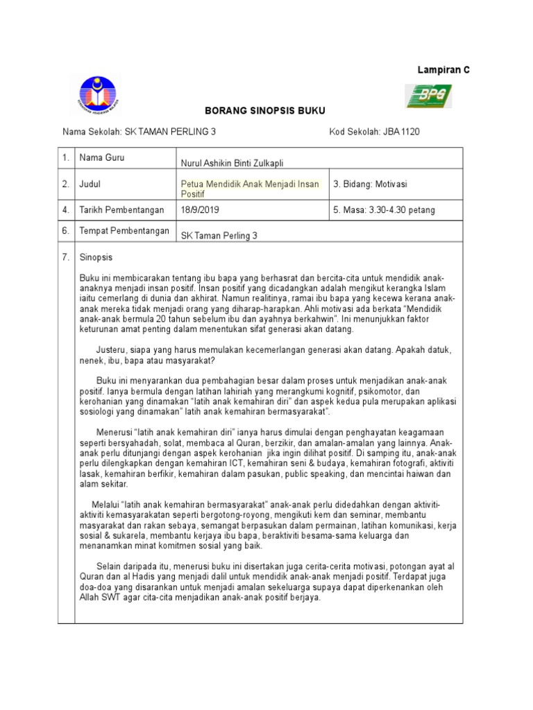 Petua Mendidik Anak Menjadi Insan Positif Doc Borang Program Pemerkasaan Budaya Amalan Membaca Buku Kalangan Guru Pelatih Ipg Kampus Temenggong Course Hero