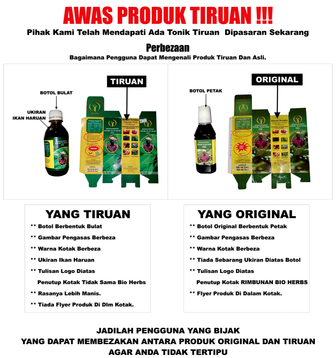 Awas Produk Tiruan Tonik Tuan Haji 1921 Tonik Tuan Haji 1921 Utara
